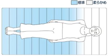 | 硬さ | (肩)柔らかめ (腰)硬め (脚)標準 | (肩)柔らかめ (腰・脚)標準 | (肩)柔らかめ (腰・脚)標準 | (肩・腰・脚)標準 |