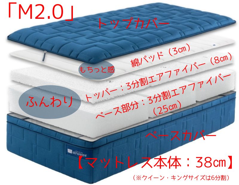 | マットレス構造 | 3分割エアファイバー1層 ベース | 3分割エアファイバー2層 トッパー+ベース |
