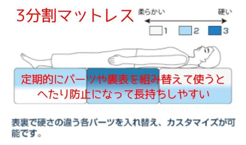 エアウィーヴ マットレスの3分割構造は、ローテーションでパーツや裏表の入れ替えができるんですね。