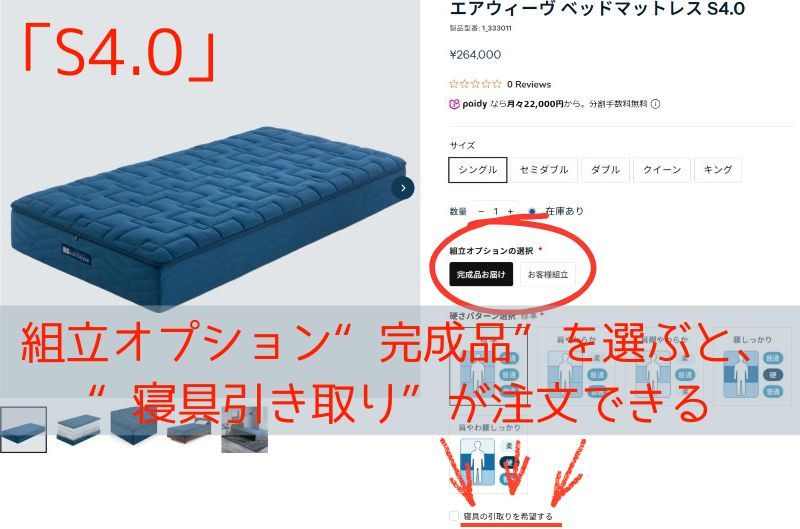 店員さんの話では、「ベッドマットレス S4.0」のほうが人気でよく売れているそうです。