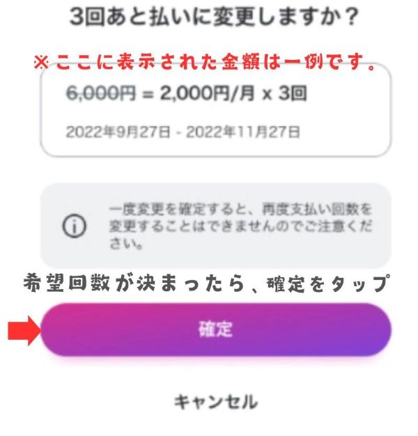 あと払いペイディでは、3回・6回・12回から支払い回数を指定できます