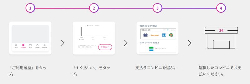 すぐ払い翌月の確定を待たずに、好きなタイミングでコンビニ払いが可能。