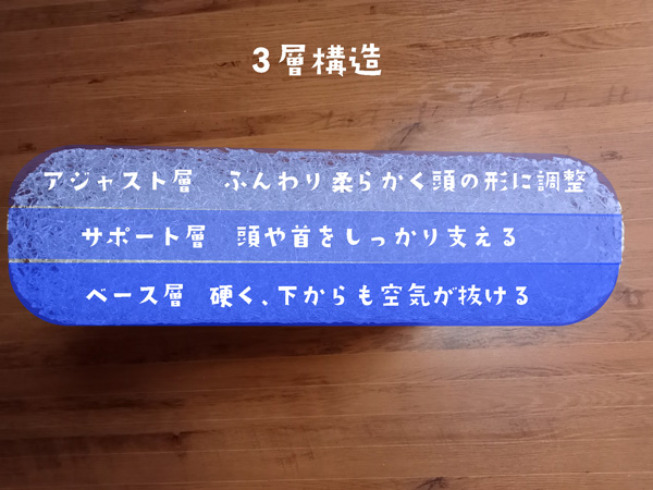 長く使ってもへたりにくいのは、下層にいくにつれ硬さが増して、頭や首をしっかり支えてくれる構造になっているからなんですね。