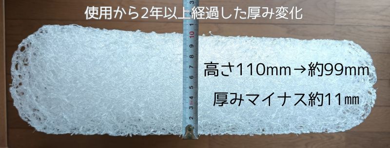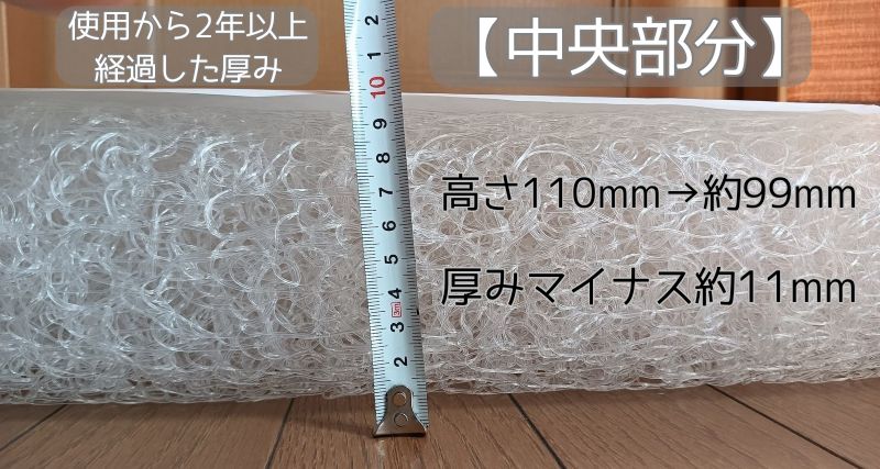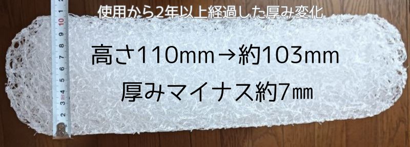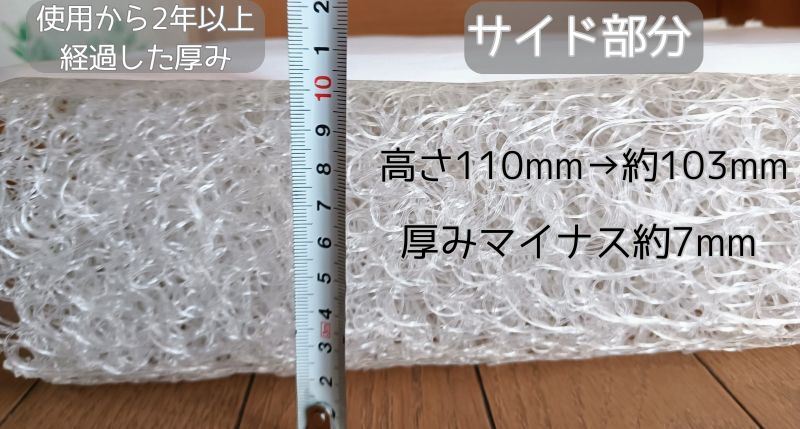 2年以上経過した 厚みの変化 | 中央部分 | サイド部分 |