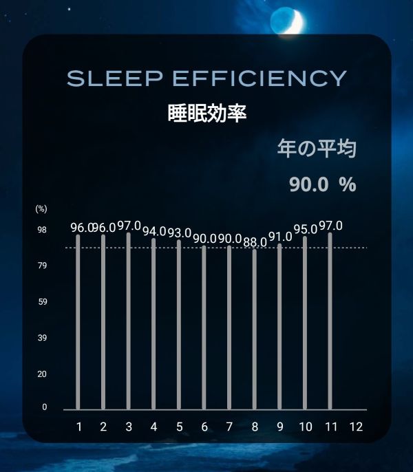 ・睡眠効率は平均90%