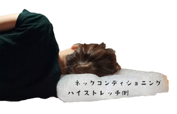 ハイストレッチ側はしっかりストレッチが効いてるので、首回りや頭の筋肉が緩まり、リラックスしながら眠りにつきやすいんですね。